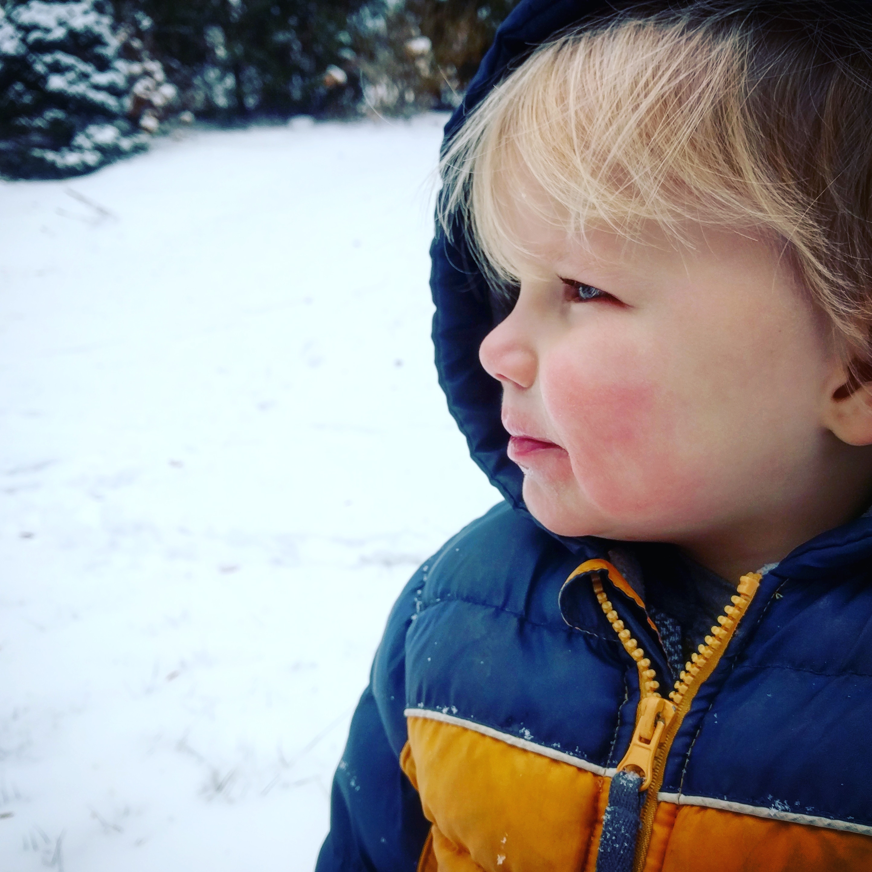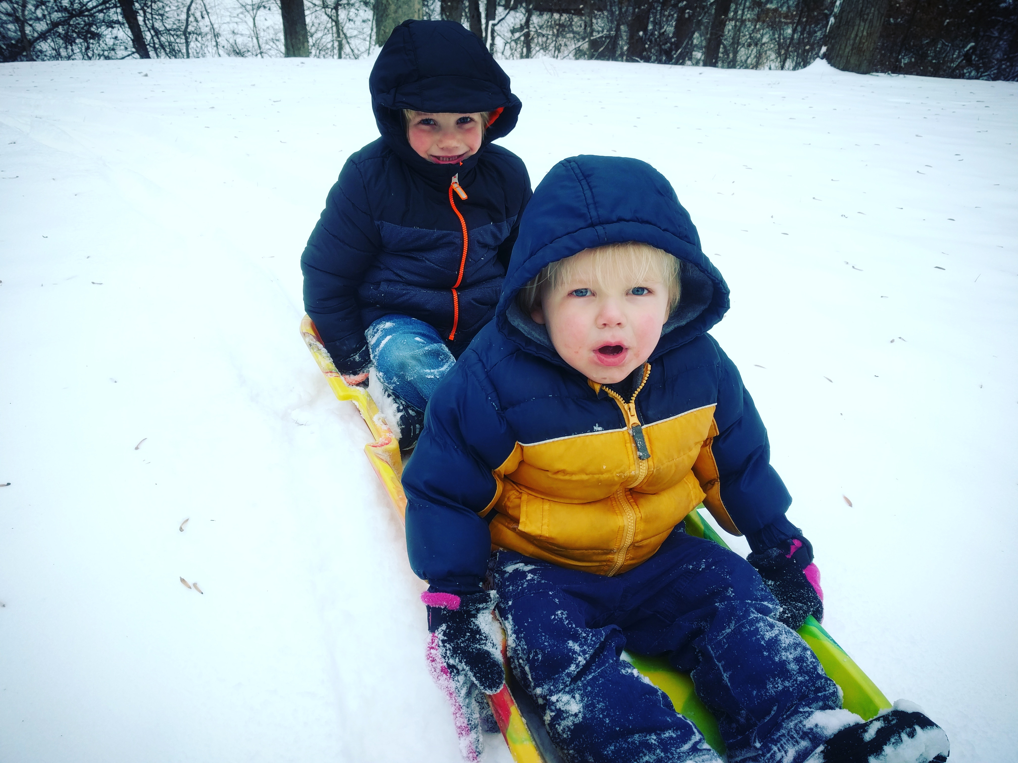 It was spent watching TV, reading books, and a short playtime outside in the snow. C decided to forgo our outside adventures, opting for a book and the fireplace, but the boys and I braved the cold to clean off the car and do some quick sledding.