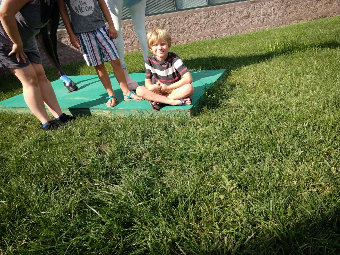 You know what happens when you hand your three year old your phone and ask him to take a picture of you and your two older kids in front of an awesome horse sculpture?