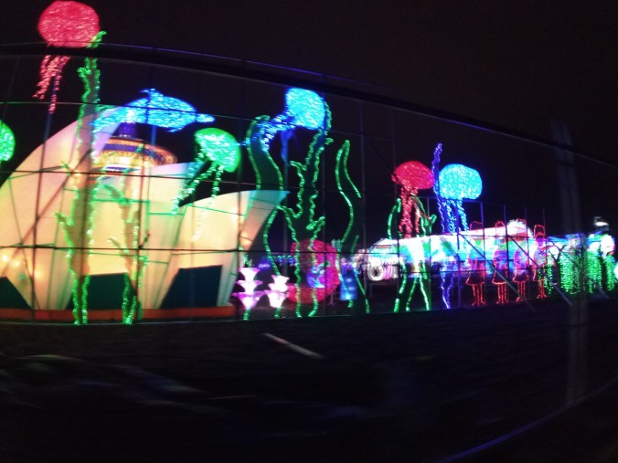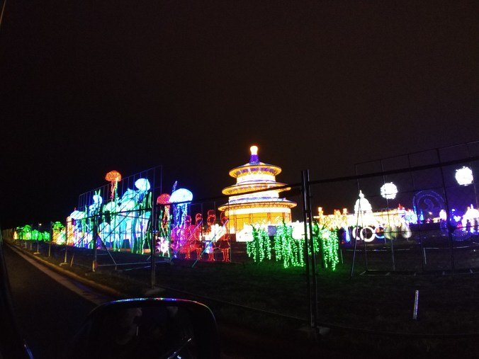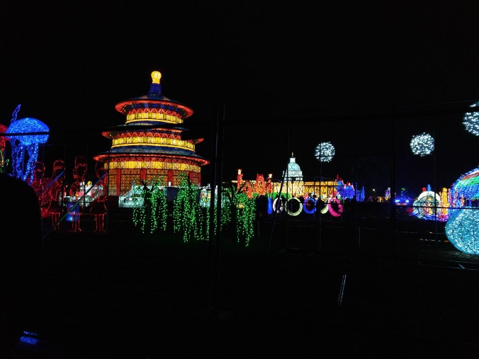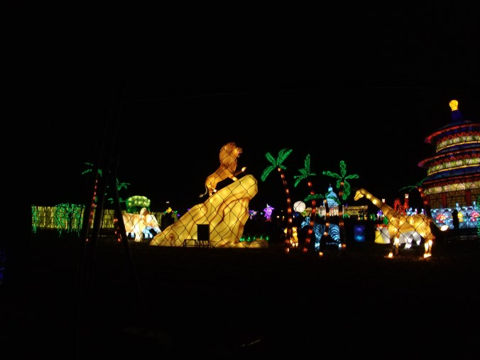 I did some research and learned that it was an elaborate art display that would be running for over a month. Thinking the kids would love it, I looked into the pricing for it and realized it was way out of our budget. Even so, I wanted them to see it. This evening, on our way home we took a back road around it so the kids could get a closer view of it. We weren’t disappointment! It was simply wonderful!
