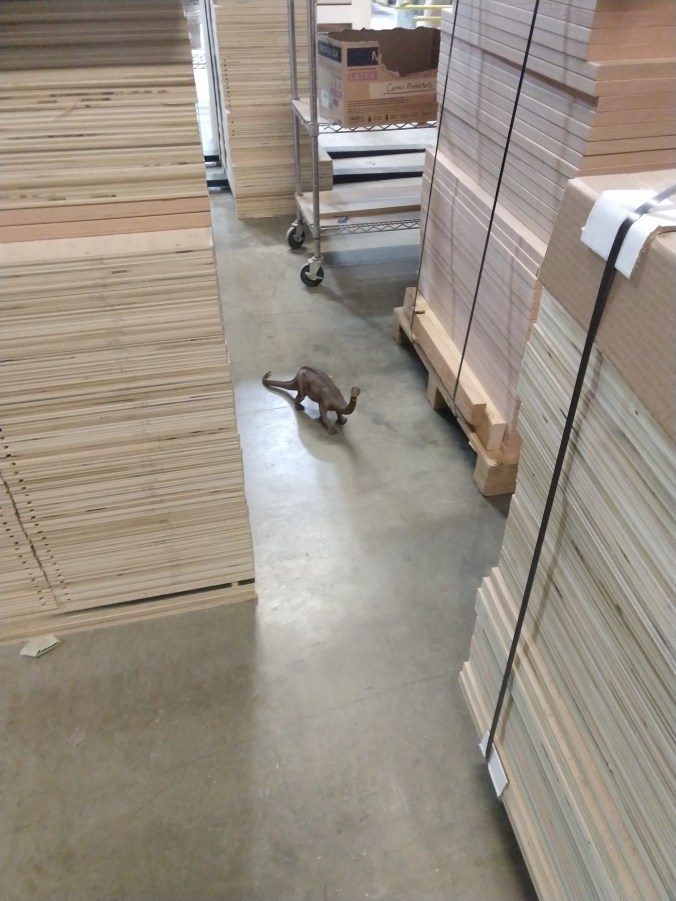 One of the things that I love about walking around the shop as of late are the surprises our kids leave us. It isn’t unusual to see Captain America hanging out on a dolly, or Barbie chilling in the forklift. My favorite is probably the infestation of dinosaurs that are slowly taking over the warehouse. 😂