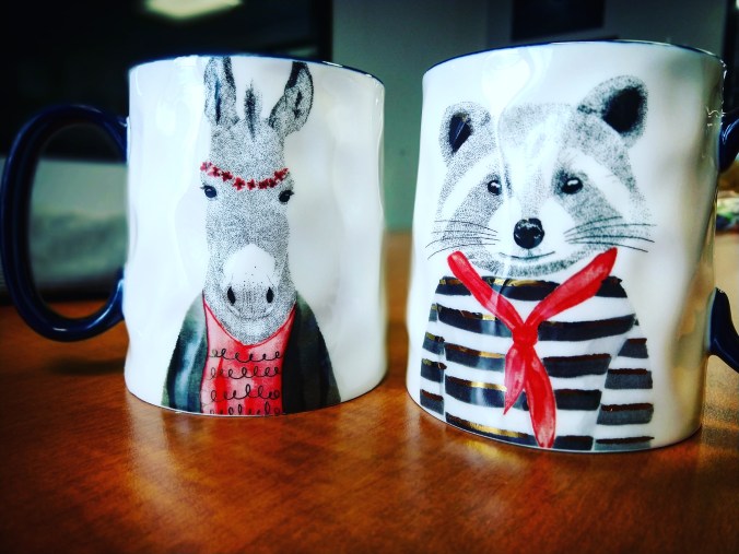 Back went the NYC mug and I’m now the proud owner of these silly hipster donkey and raccoon mugs. So much better than drinking from Pyrex!