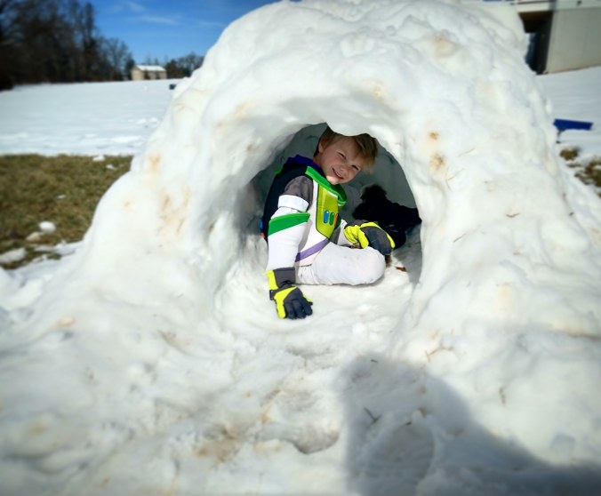 The igloo didn’t fair much better, though I did get Big E outside long enough this morning to play in it before it shrank. I’m not sure that we will have another snow this winter, so I’m glad we got this one, though I would have been happy if it had settled on the ground for a few more days.