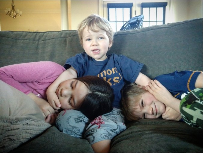 My kids play together pretty well, but they also argue a lot. However every once in awhile I catch a very sweet moment that make me smile.