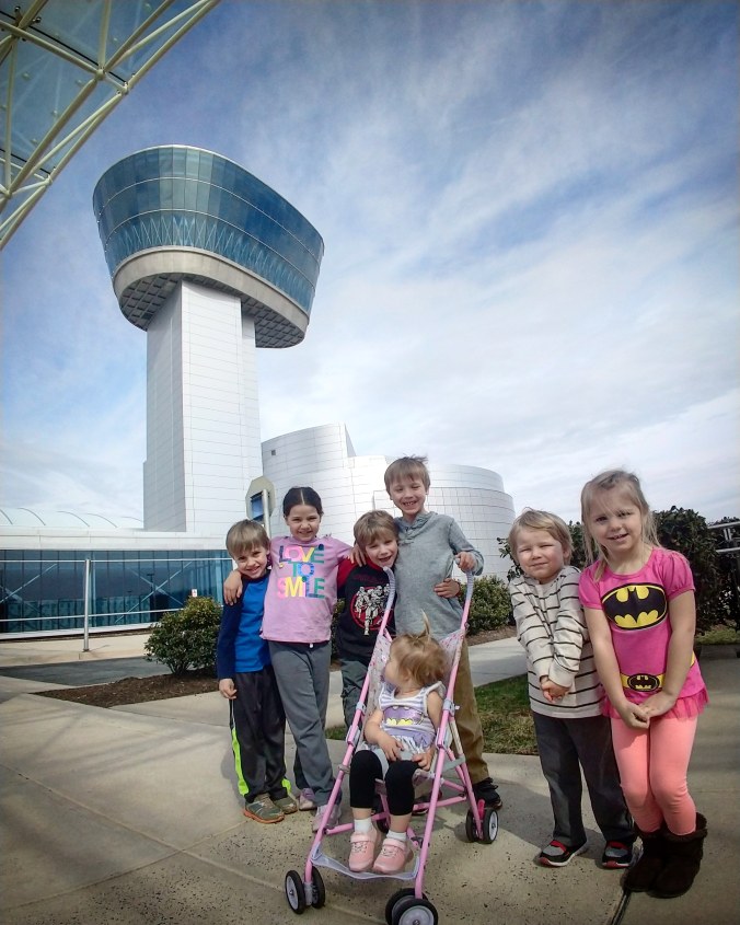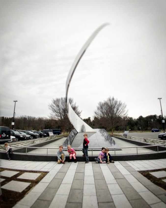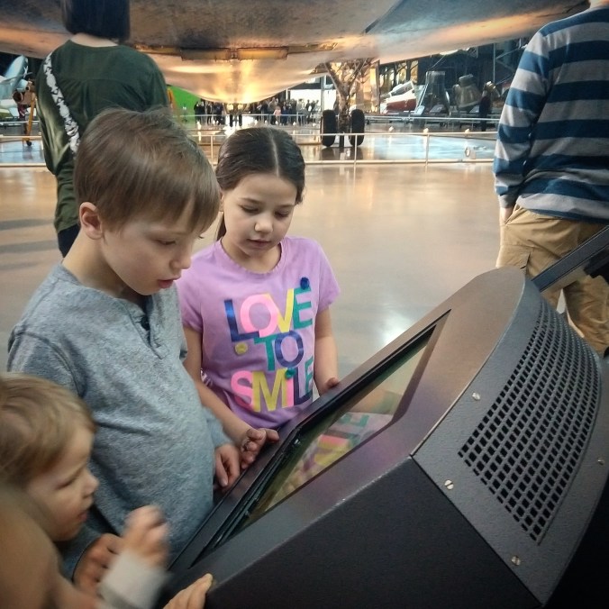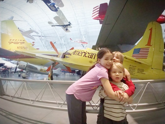 Today was a beautiful day for a field trip. My sister in law’s family picked the kids and I up this morning and we headed to a nearby Air and Space Museum. (Tim had taken the kids there awhile back, but I had been working at the time, so I hadn’t gotten to go.) I really enjoyed the experience. I think my favorite part was standing next to the Space Shuttle and realizing how huge it is in person. The kids were awed by the many planes and helicopters. The museum also has a mock air traffic control tower you can go in. Since the museum is located next to an airport, you can watch planes as they land and take off. The kids had a wonderful time, made better by the opportunity to spend the day with their cousins.