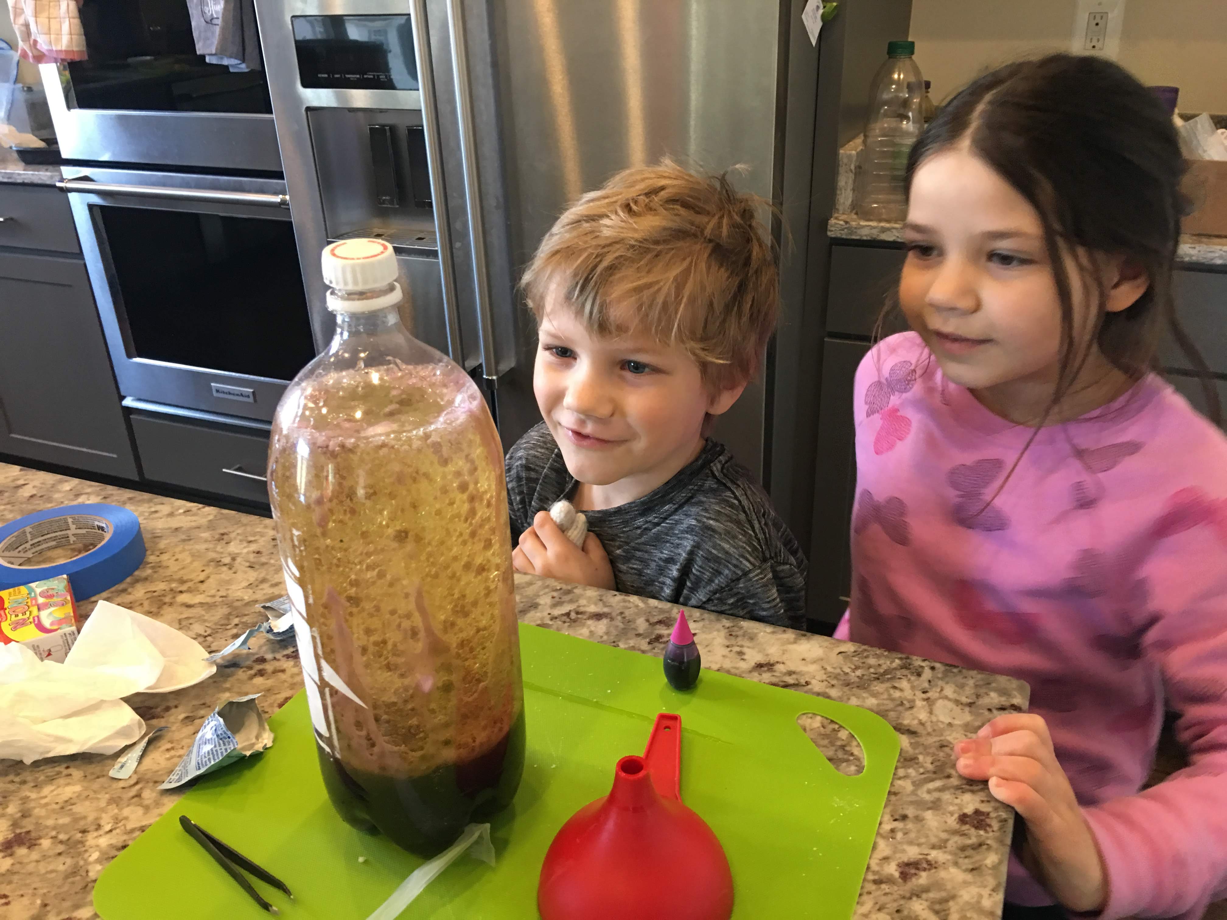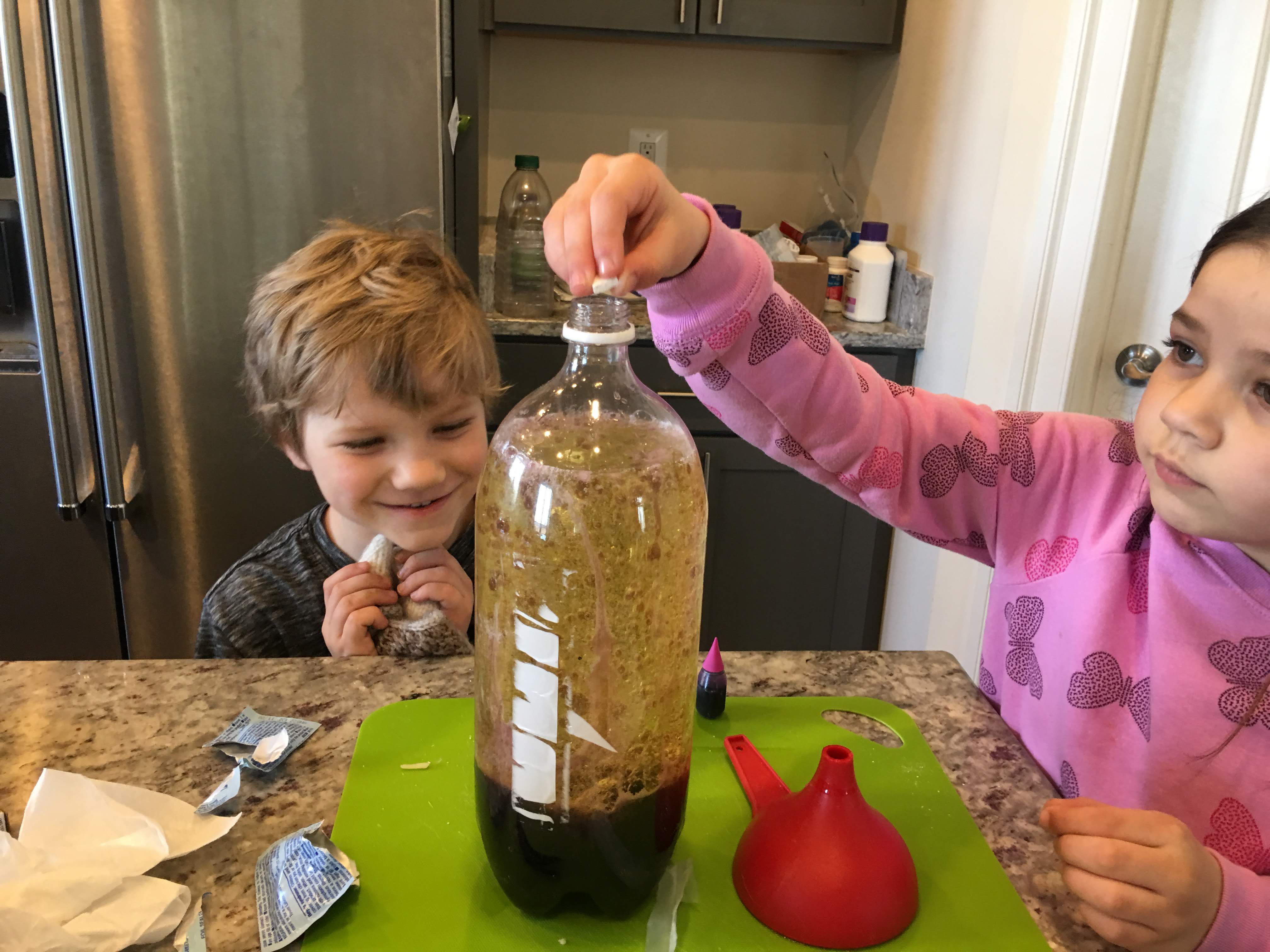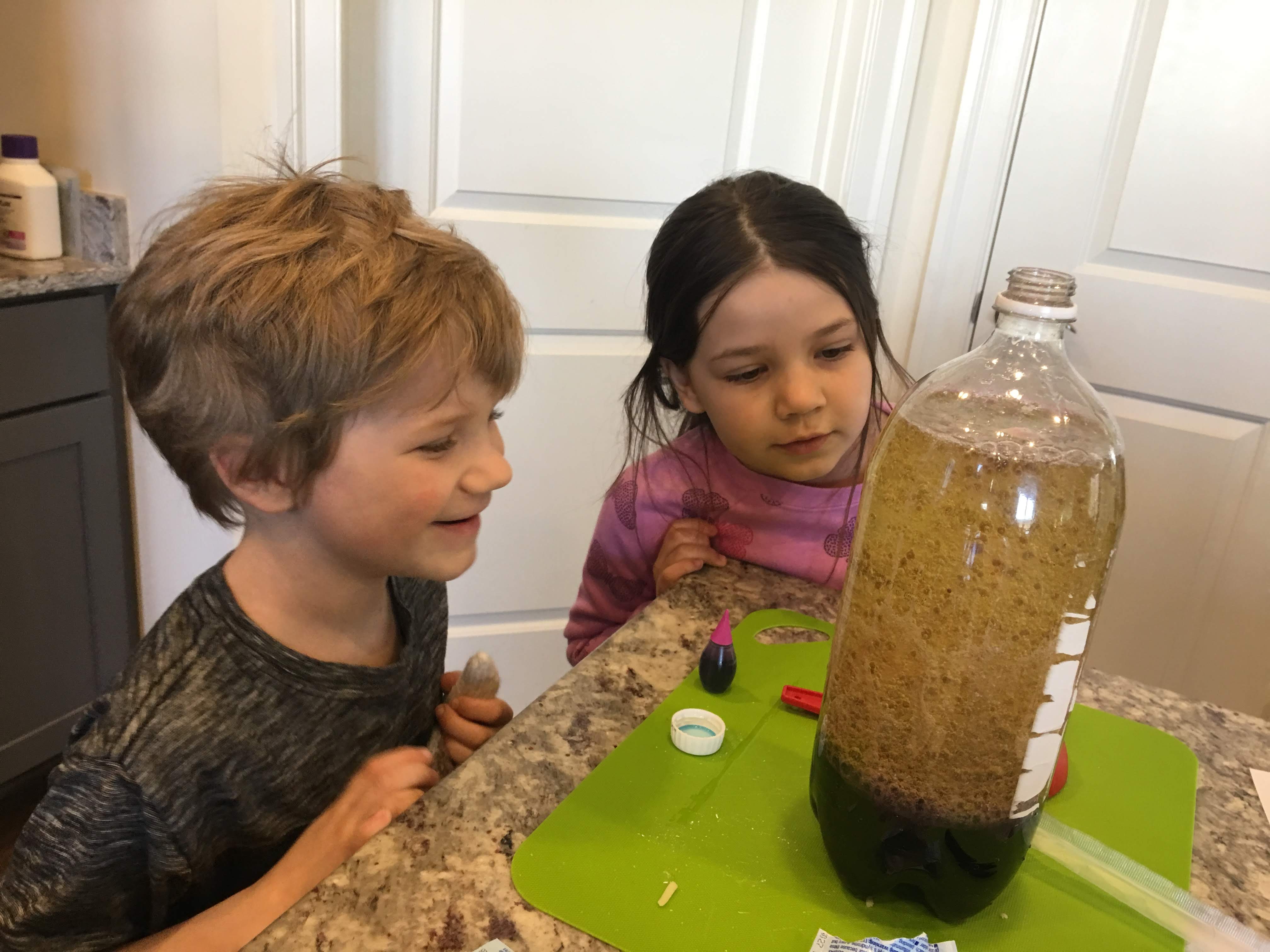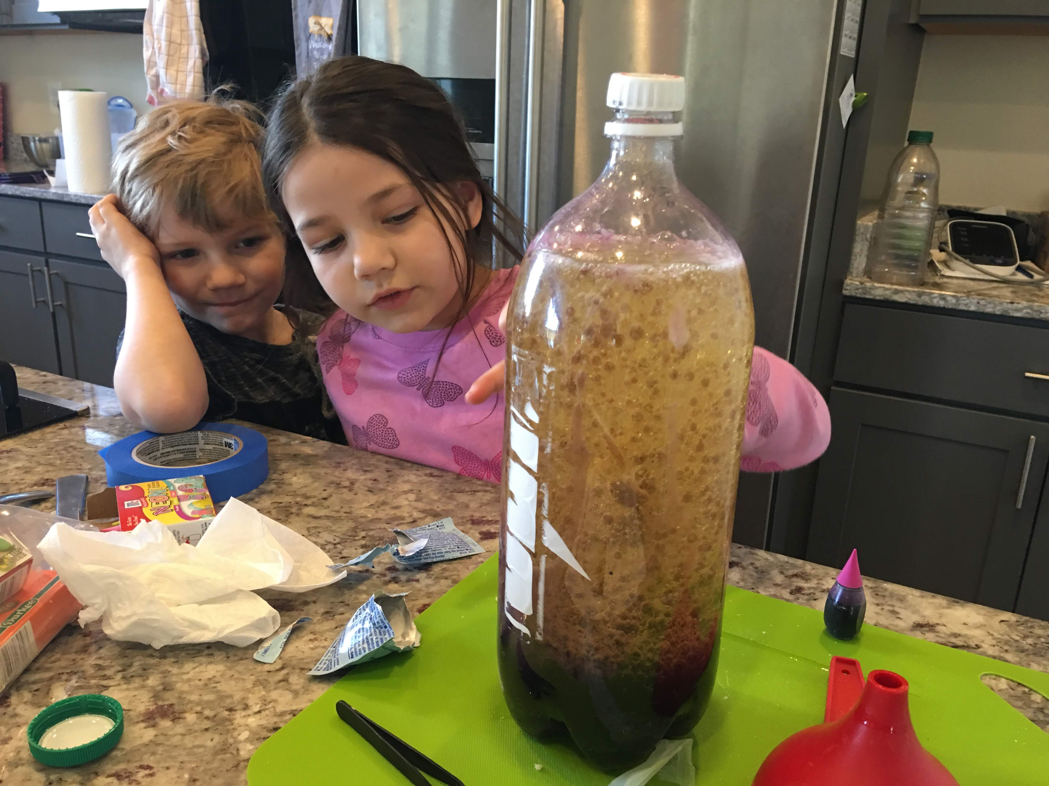 We are all still adjusting to the time change and we honestly didn’t get much school done today. However we did spend most of the afternoon outside and then headed in for a quick science experiment. The kids made their own ‘lava lamp.’ Oil, water, food coloring, Alka Seltzer, and voila! They had a bubbling, fizzing, bottle of fun!