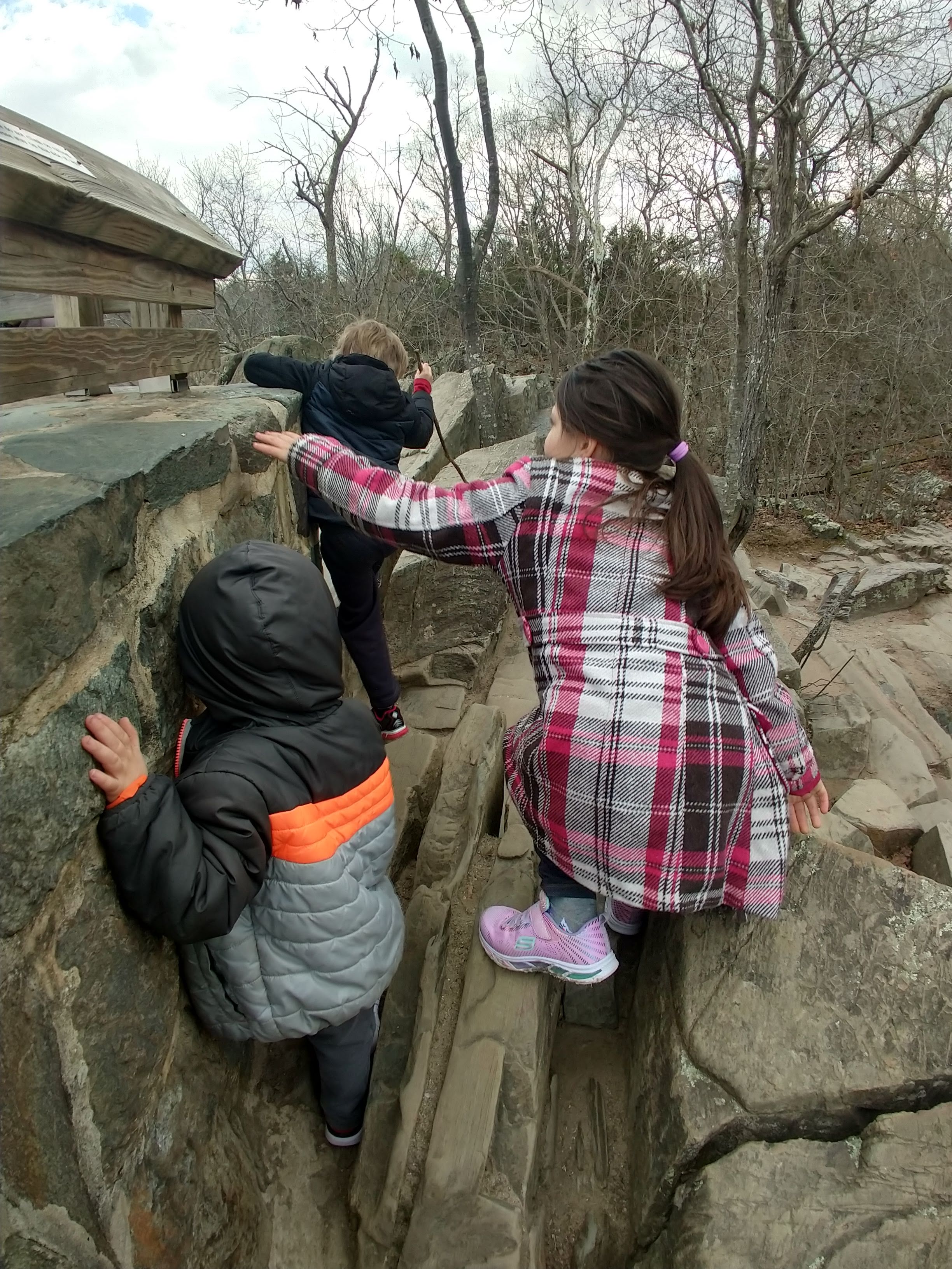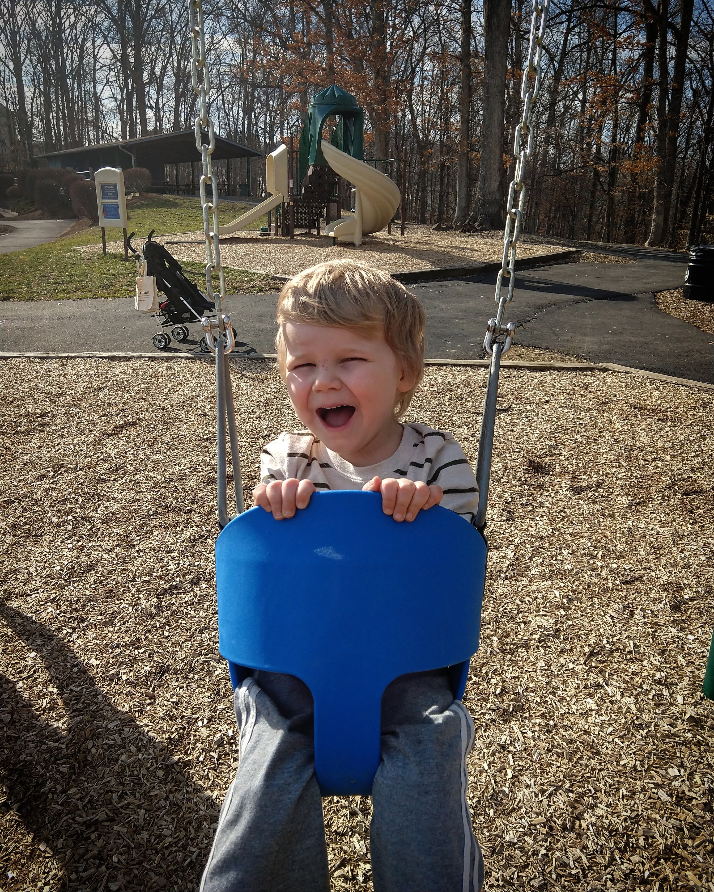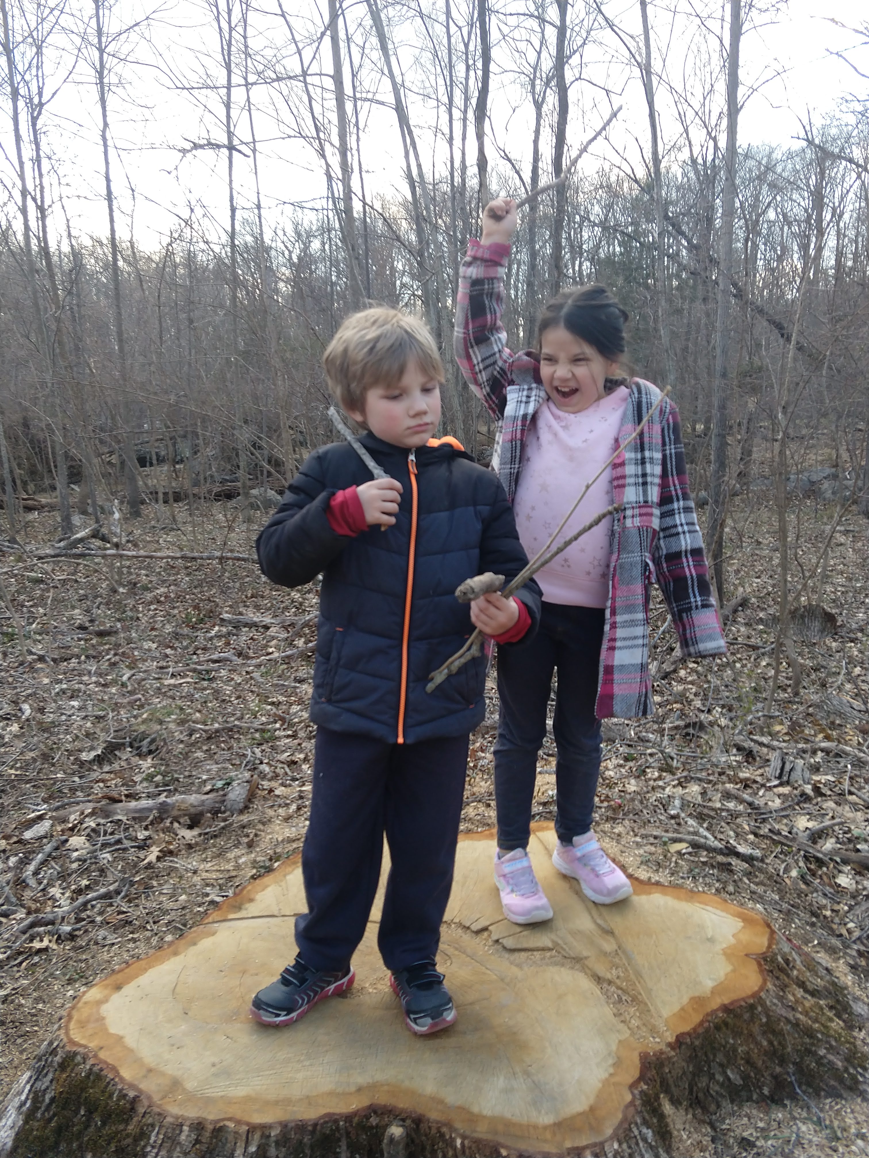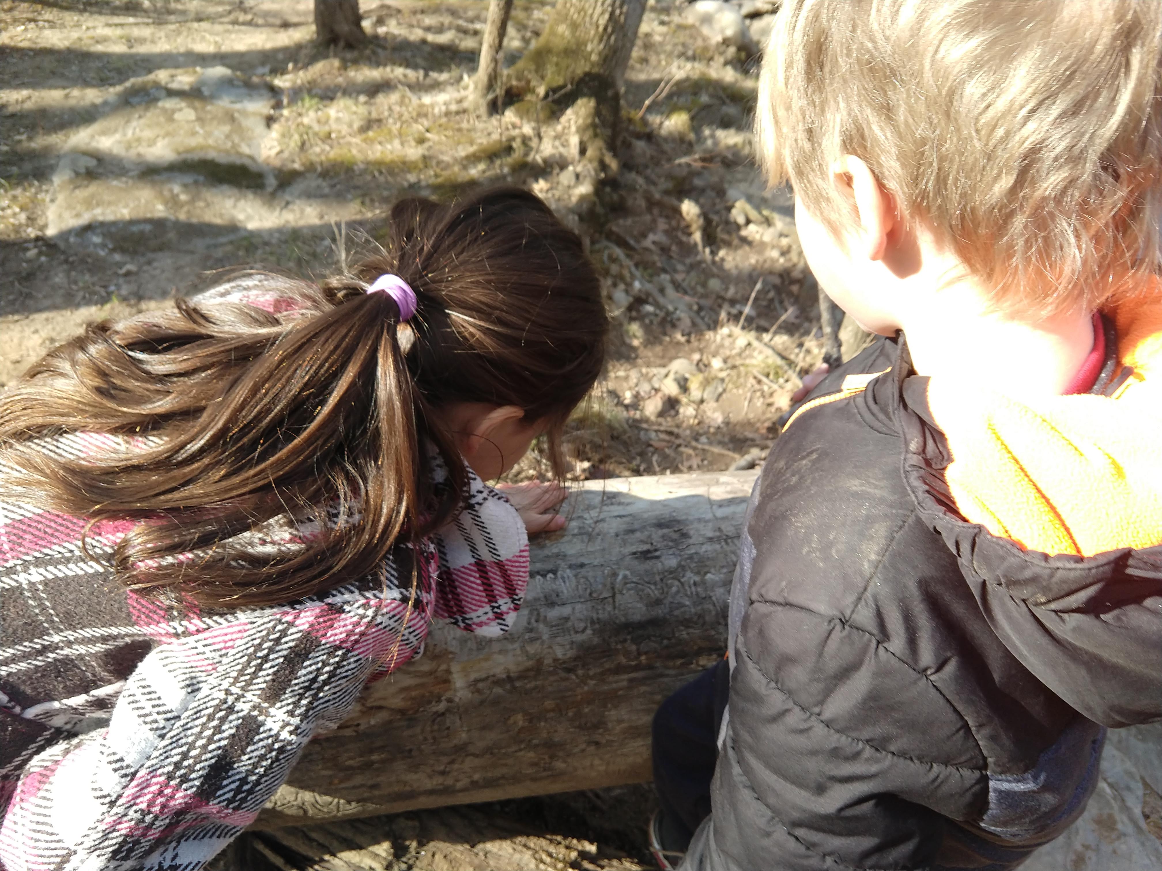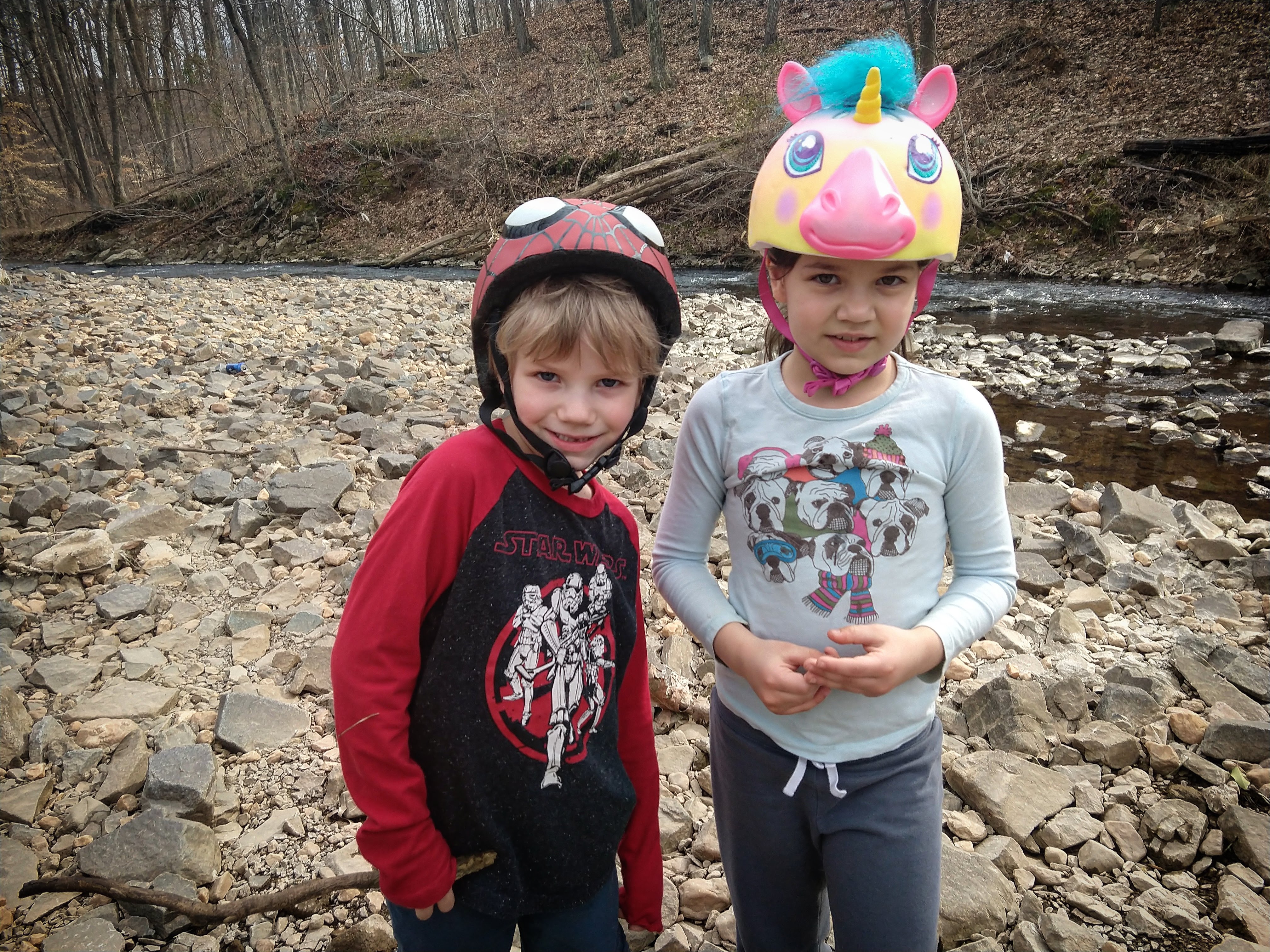 Today was beautiful. Absolutely gorgeous with temperatures in the upper 70s. There was no way we could stay inside. We did some school this morning and then after lunch we headed to our creek. The kids took their scooters and Baby E had his balance bike. We made it to the creek and the kids played on the edge- getting their fingers wet, tossing stones, and feeling the algae that now covers the creek bed. We wandered our way through the nearby woods, keeping parallel to the stream and eventually meandering back to it further down its banks. We climbed over rocks and up thorn bush covered hills and found our little corner of the world where we discovered the crayfish last year. We didn’t see any, but we did turn around to find ourselves within 30 feet of a huge doe traipsing through the underbrush. When we were done at the creek we played on the playground until it was time to go home. Once home we spent the rest of the evening outside.