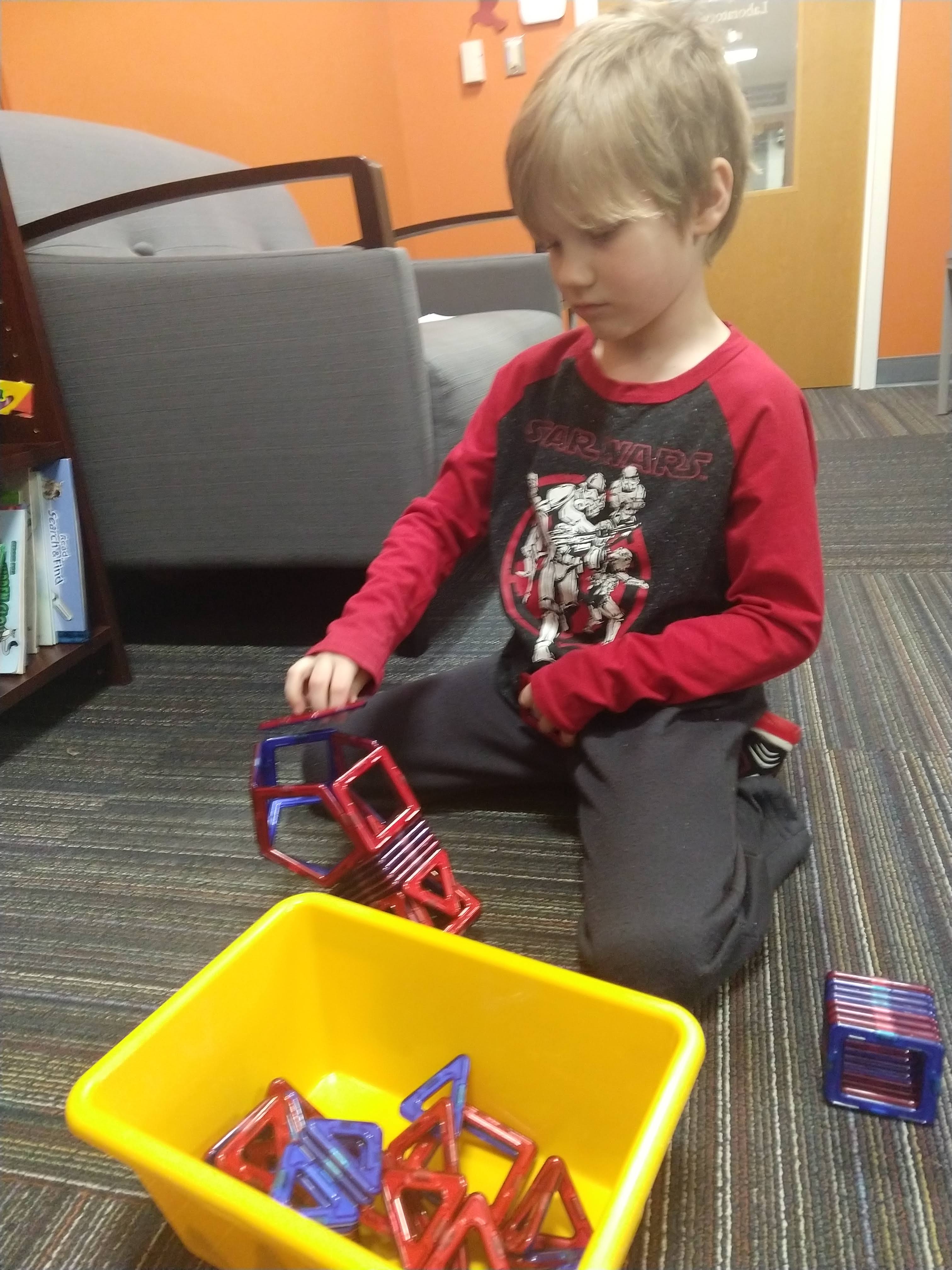 I figured the big kids would do just fine with it, but Baby E has never been one for strangers to I imagined that he was going to be a challenge. However he learned that after he finished his study, he would get to pick a prize to bring home.
