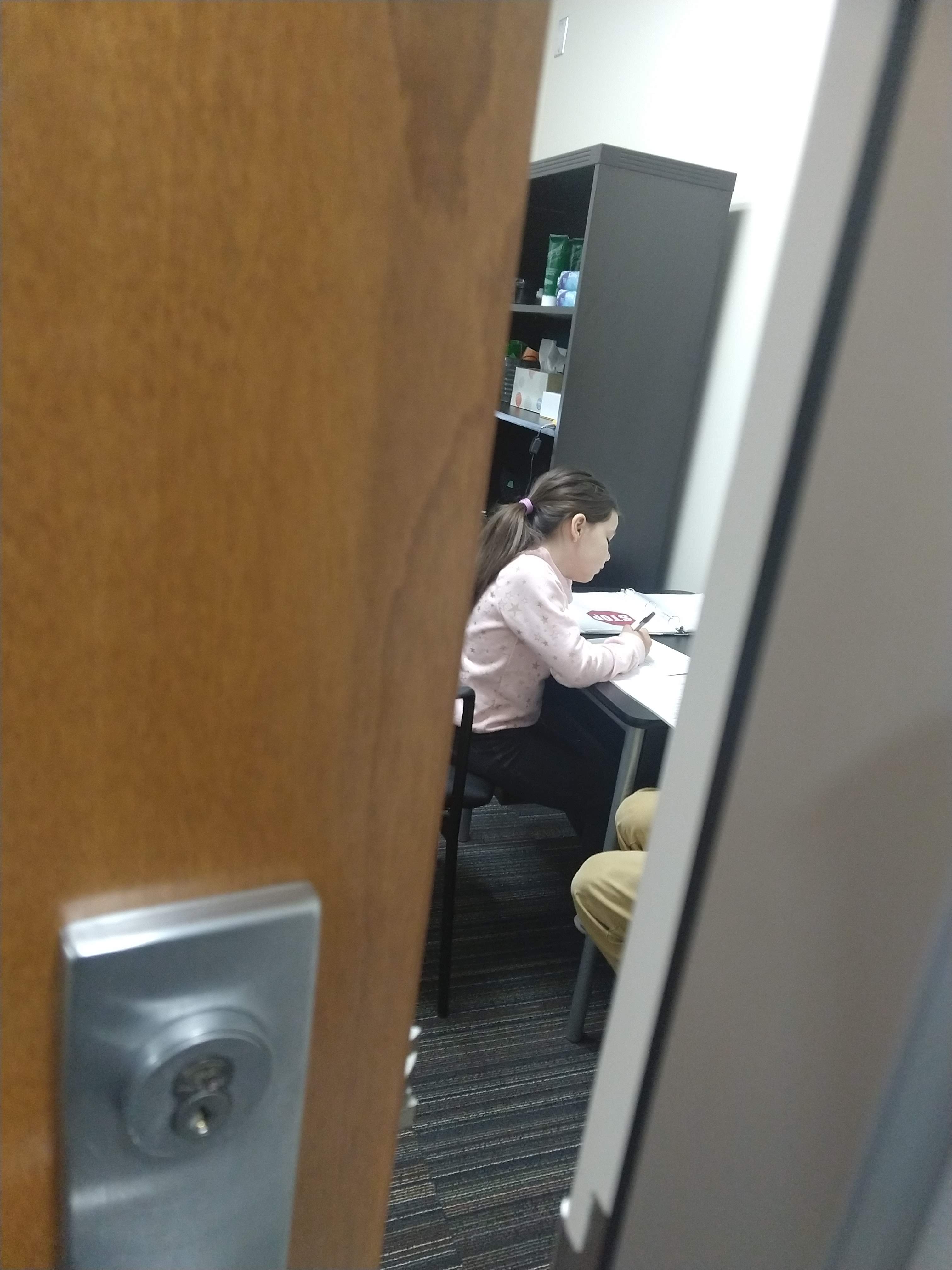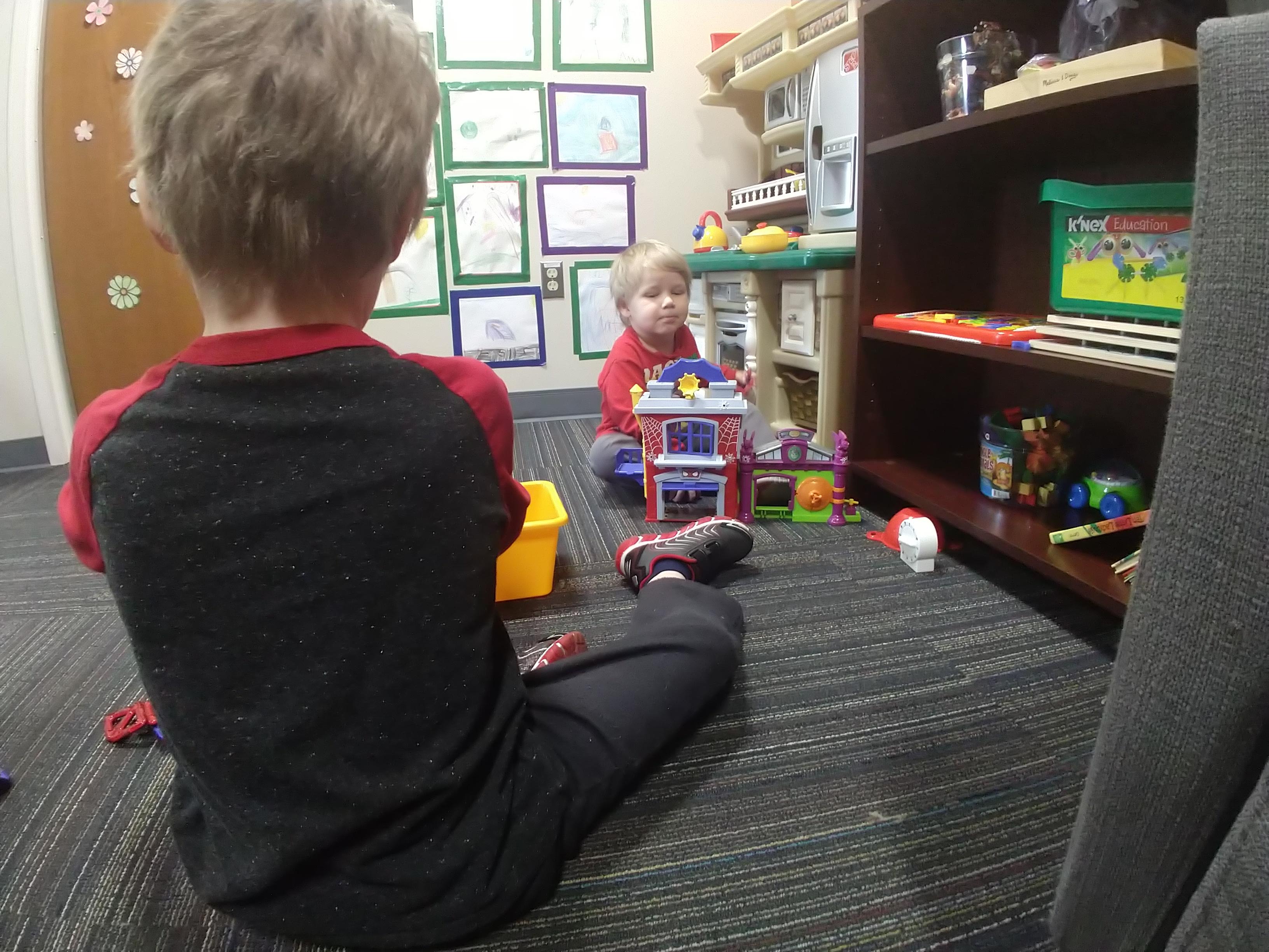 When we got there, C got to go first. When she was done, Big E did his two studies, and then Baby E went right with the researcher without hesitation. I was shocked. He didn’t once ask for me. I stood outside the door and listened as he followed all the instructions.