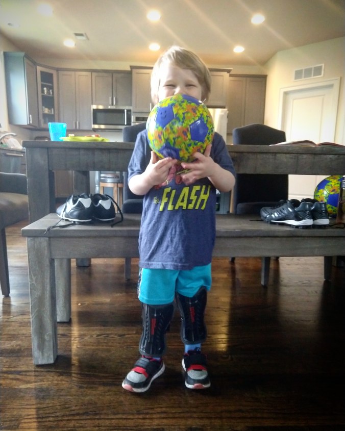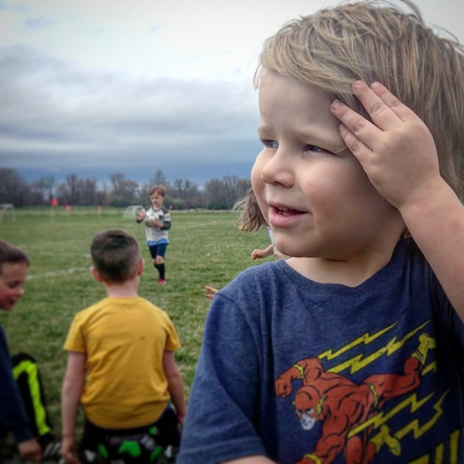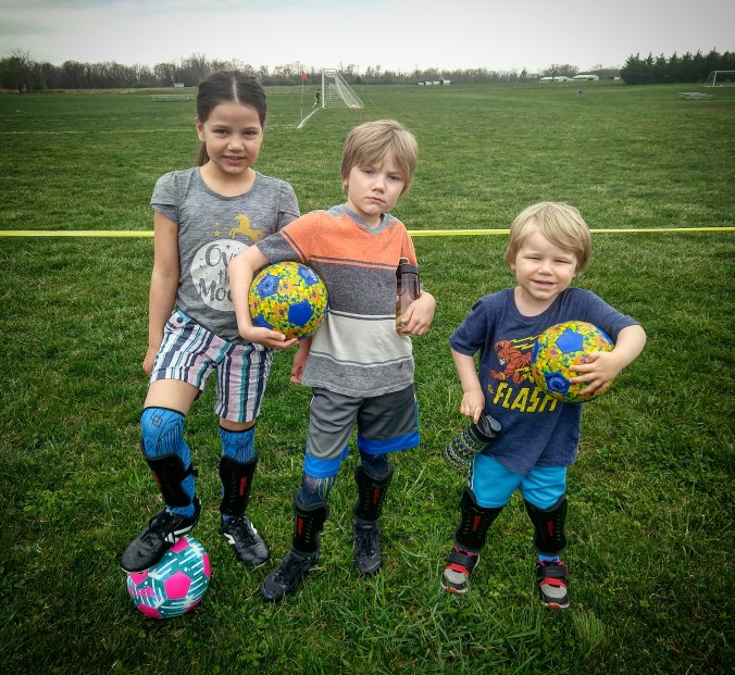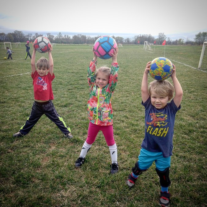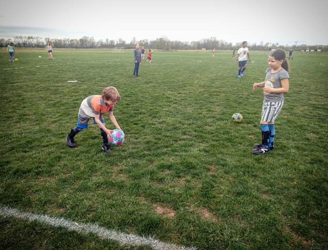 Soccer season was supposed to start last Friday, but it rained that day and soccer got cancelled. Even though the sky threatened showers all day today, the rain held off and soccer was a go.