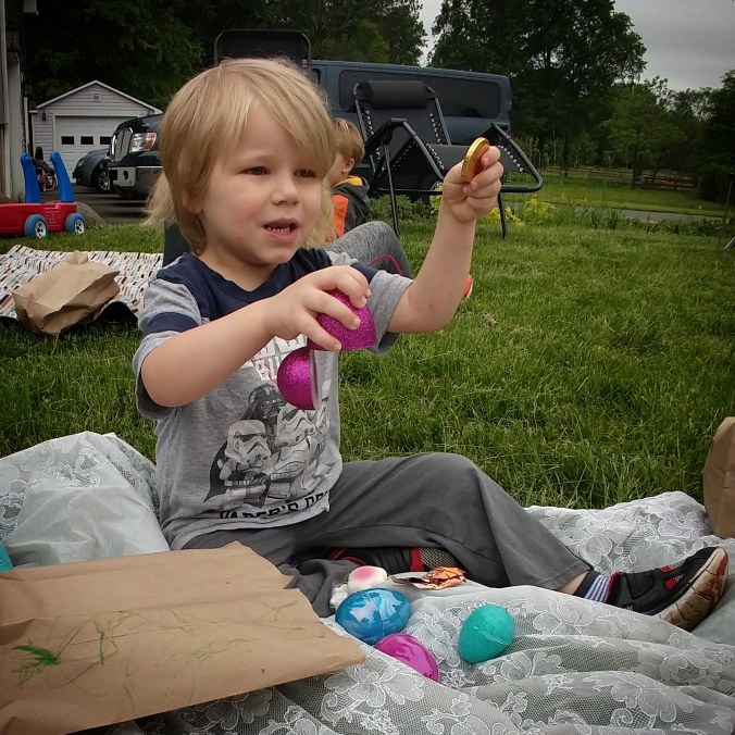 On a brighter note, we were invited to our friends’ house today for a non-Easter Easter egg hunt. The kids had such a wonderful time playing with their friends and hunting for eggs. They wore themselves to exhaustion.