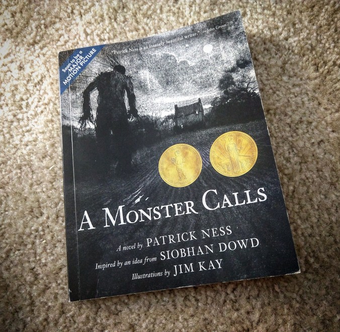 I had picked up “A Monster Calls” at the library book sale last week. I had seen the cover and thought it looked interesting and a quick skim of the back made me decide to put it in the bag. It’s a kids book, intended for ages 12 and up, so I figured it would be a quick read. I hoped it would avoid the shallow characters and thin plotlines that typically run rampant in such books.