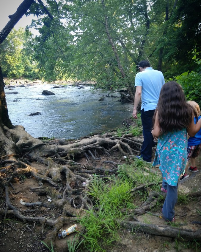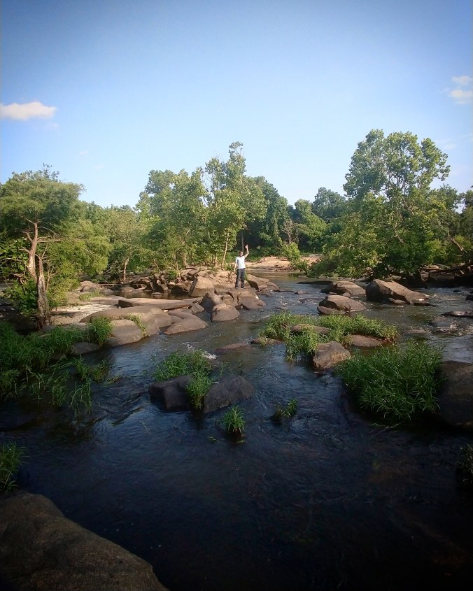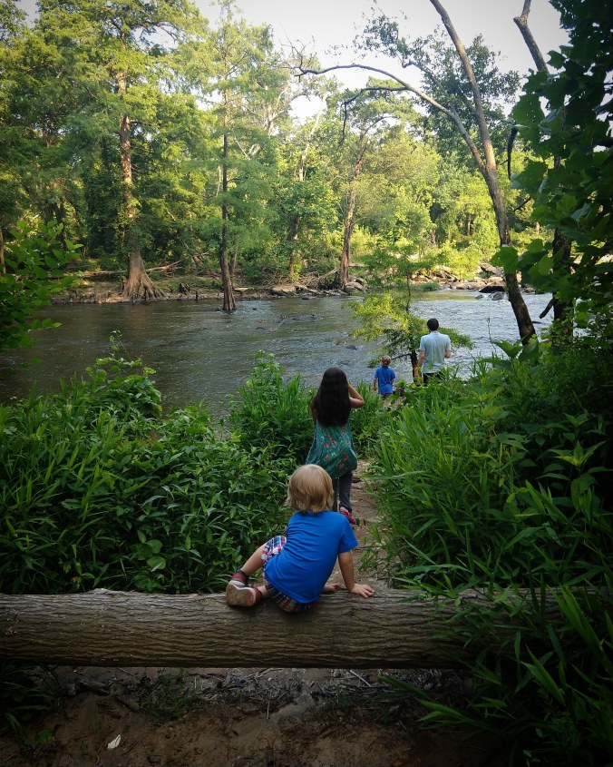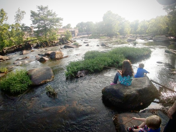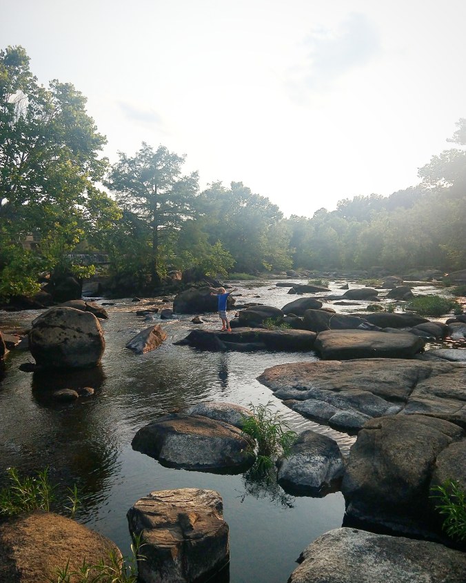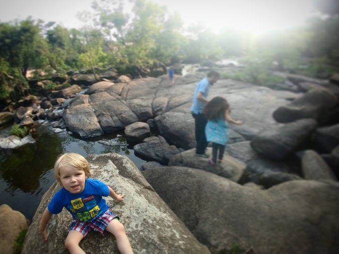 This morning we got in the car and just started driving. We had no destination in mind, other than to head down 95 and see where we ended up. We landed in Rocky Mount, North Carolina. We found a beautiful park with water access and we spent some time climbing rocks and exploring . We are at a hotel now and the kids couldn’t be happier!