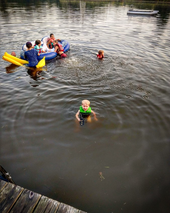 One of the things that the kids were the most excited to do on vacation was to go swimming in the lake. Baby E was particularly excited about the prospect even though he doesn’t know how to swim.