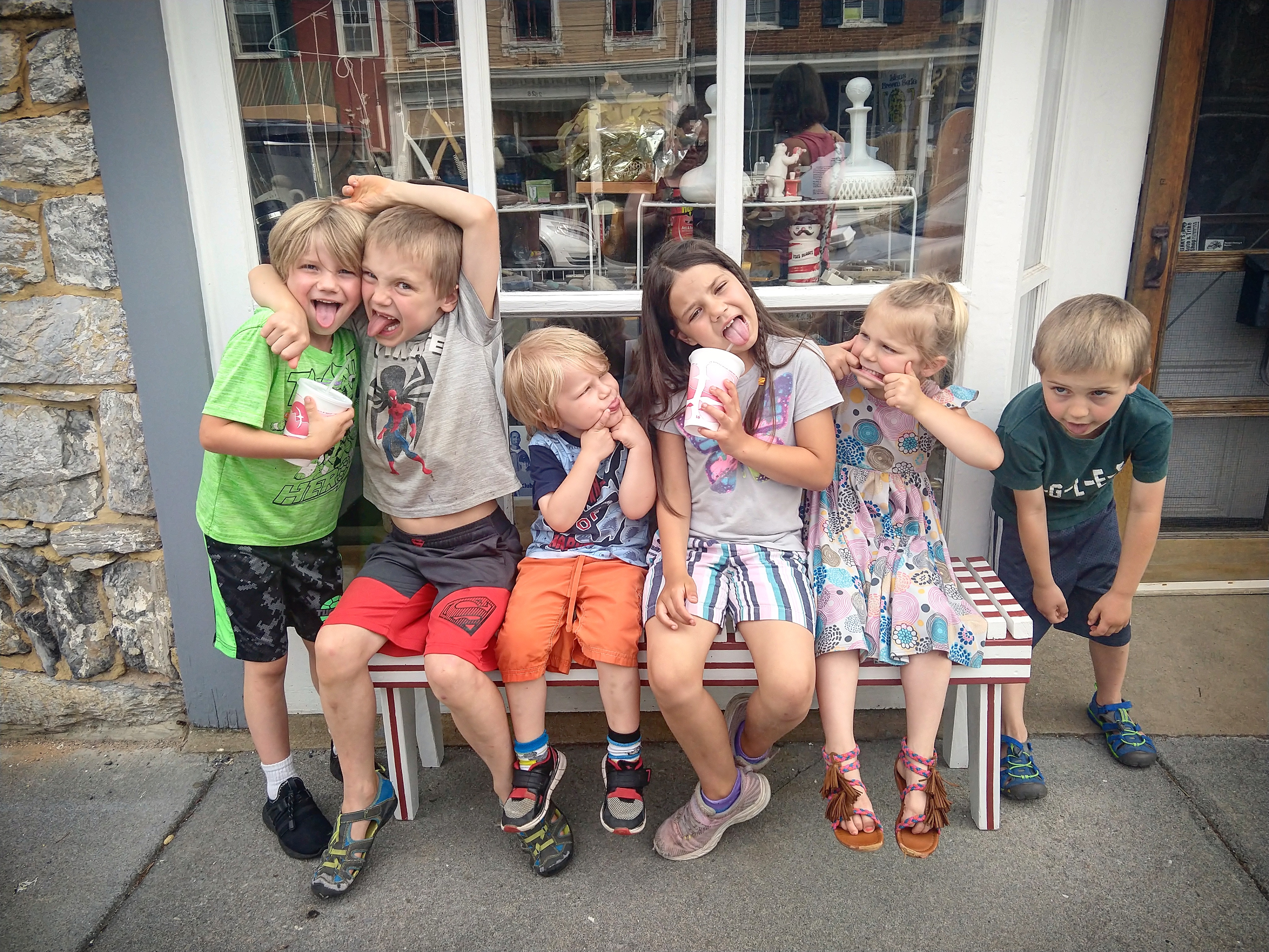 We had an impromptu history lesson as the kids learned about stocks and pillories. We wandered through a historic graveyard and peered through the windows into living rooms and dining halls decorated to reflect early colonial life. We even found a run down outdoor amphitheater and the kids sang and danced under the gently swaying trees.