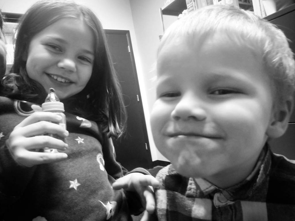I was looking through old photos this evening when I first saw this one, I thought it was Tim holding Baby E, but no, it’s Big E. This was during our farmhouse days- I recognize the chair and the green wall.