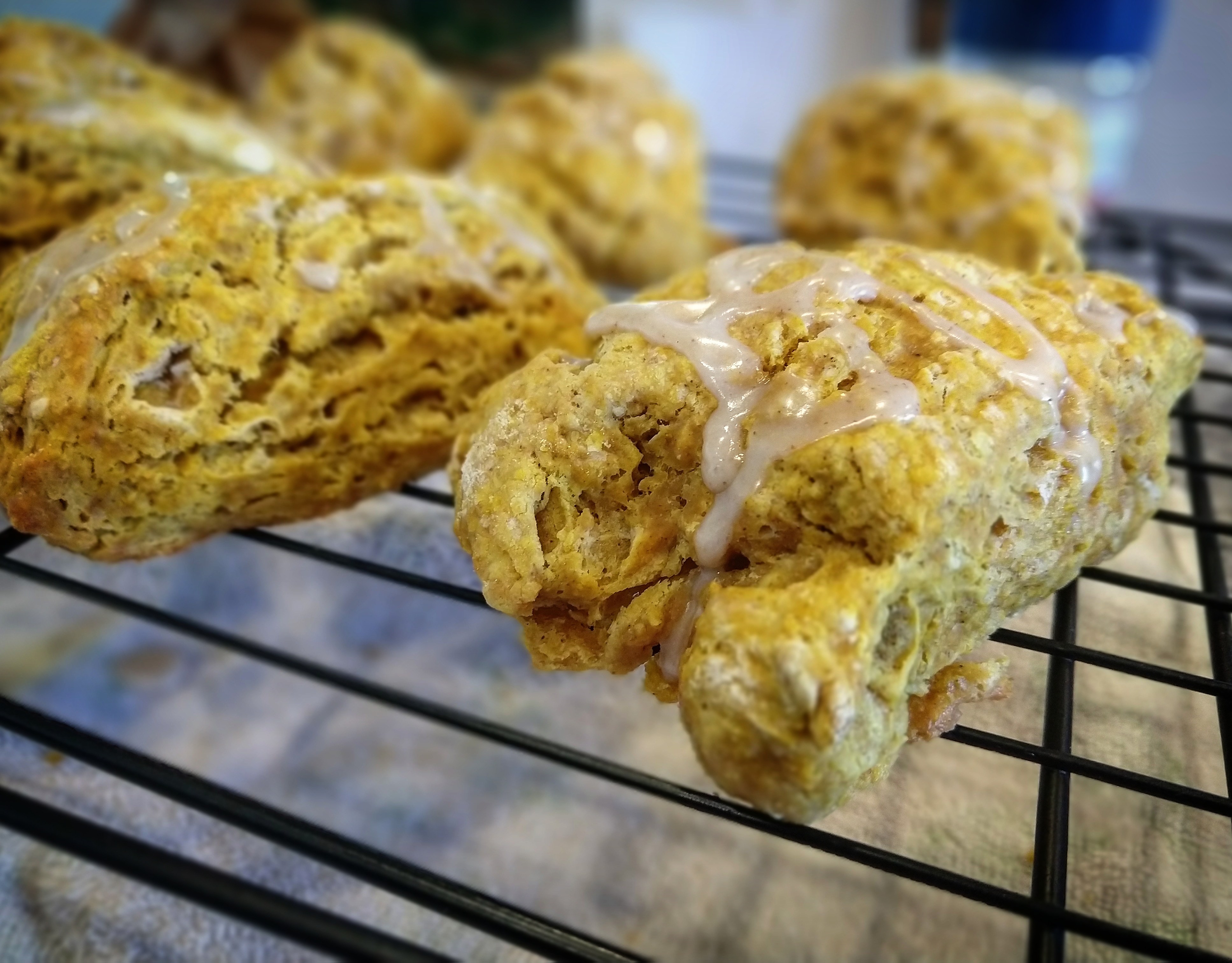 Yesterday it was a new chicken recipe and homemade apple sauce for dinner followed by a caramel apple dessert made with our fresh apples. Today I made pumpkin scones.
